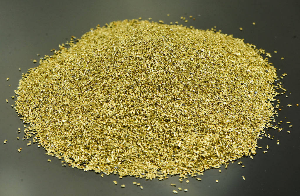 Alaskan-Yukon BC Natural Gold Nuggets US Standard# 30 Mesh that will sit on a .5 MM sleeve. This gold is very small in size. The Gold Flakes weigh 10 Troy Ounce, 311 Grams or 200 DWT and are Authentic You will receive 10 TIMES what the picture of 1 ounce shows.