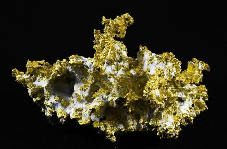 Due to the Rarity of these Specimens as a whole the Gold Content in the piece is worth 3 – 5 x’s the actual current Gold Market Prices. Many people also use this white contrasted quarts to make jewelry and this raises the price as well.
