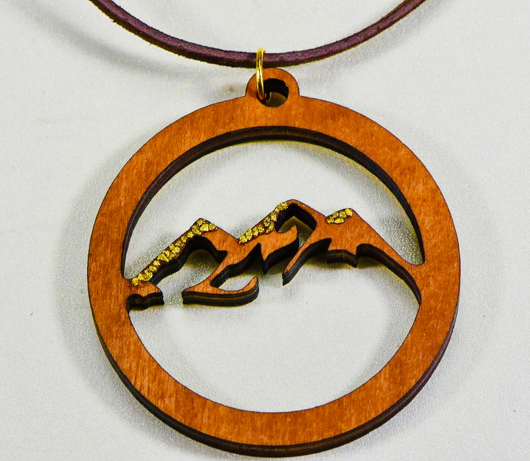 With This Stunning Mountain Scene Necklace, you will be off on the right foot to look great while on that next Hike. This is made out of Natural Birch Wood, and comes with a leather strap. All laser engraved necklaces that Have Gold On the Mountains have an additional cost. All nuggets come from our Alaskan BC Yukon Region.